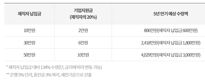 이처럼 높은 수익을 보장하는 상품이니 중소기업에 근무하시는 분들은 기업에서 모집 일정이 뜨면 꼭 신청하는 것이 좋겠습니다.