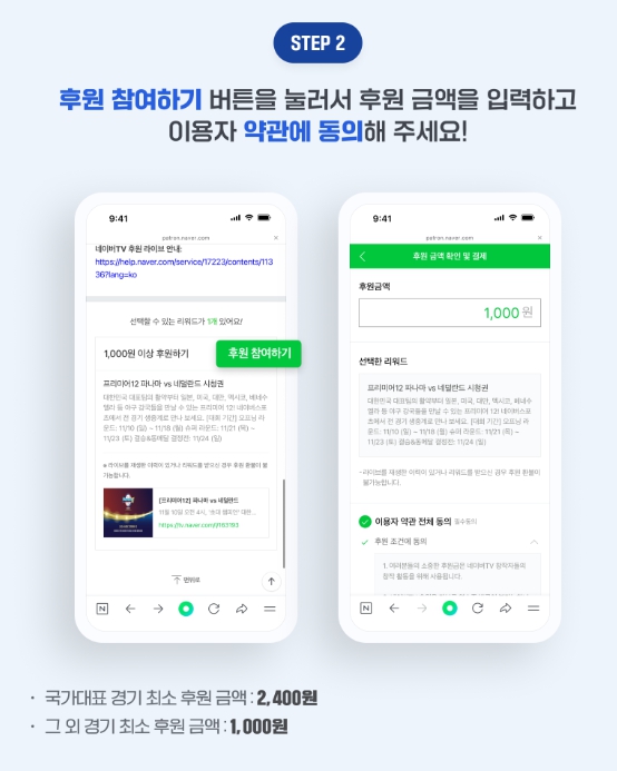 ✅국가대표 경기 최소 후원금액 : 2,400원